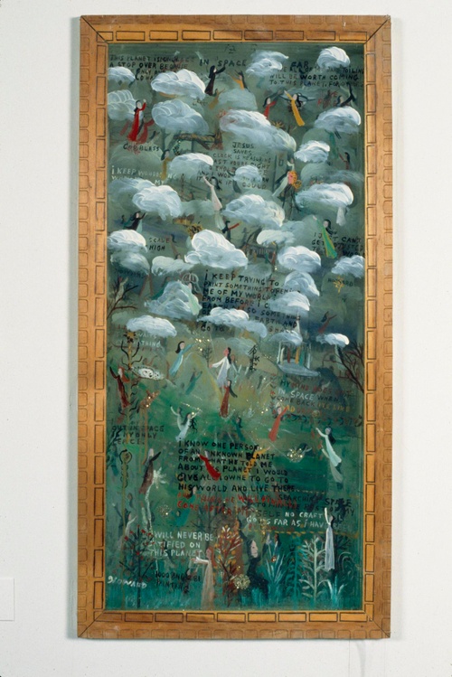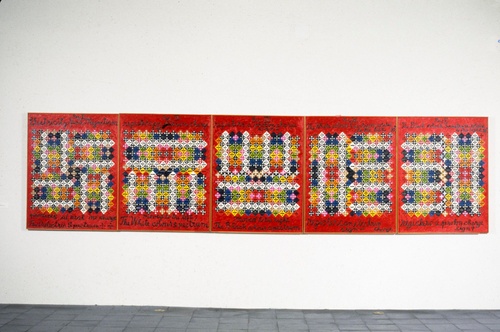 “Language” demonstrated the use of language in a wide range of expressions from conceptual street works (John Fekner) to the use of narratives or anecdotes (Vernon Fisher, Irv Tepper) and puns and clichés (Ed Ruscha, William Wiley).