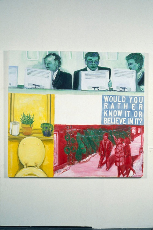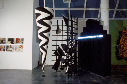 The New Museum of Contemporary Art presented its first large-scale survey of contemporary art at it’s 583 Broadway location in New York City’s SoHo district from October 8 to November 27, 1983. Organized by Marcia Tucker, Director of the New Museum, Lynn Gumpert and Ned Rifkin, Curators, “Language, Drama, Source, and Vision” included works by 68 American artists of major and emerging national reputation selected from over 300 artists whose work had been presented by the New Museum since its founding in 1977. The exhibition traced significant changes in the attitude, intent, and style of contemporary painting, sculpture, photography, video and site-specific installation through its focus on four major themes.